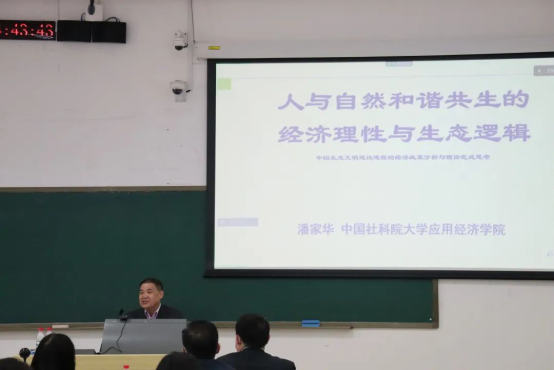 潘家华教授以《人与自然和谐共生的经济理性与生态逻辑》为题与师生进行了深入交流。A漫