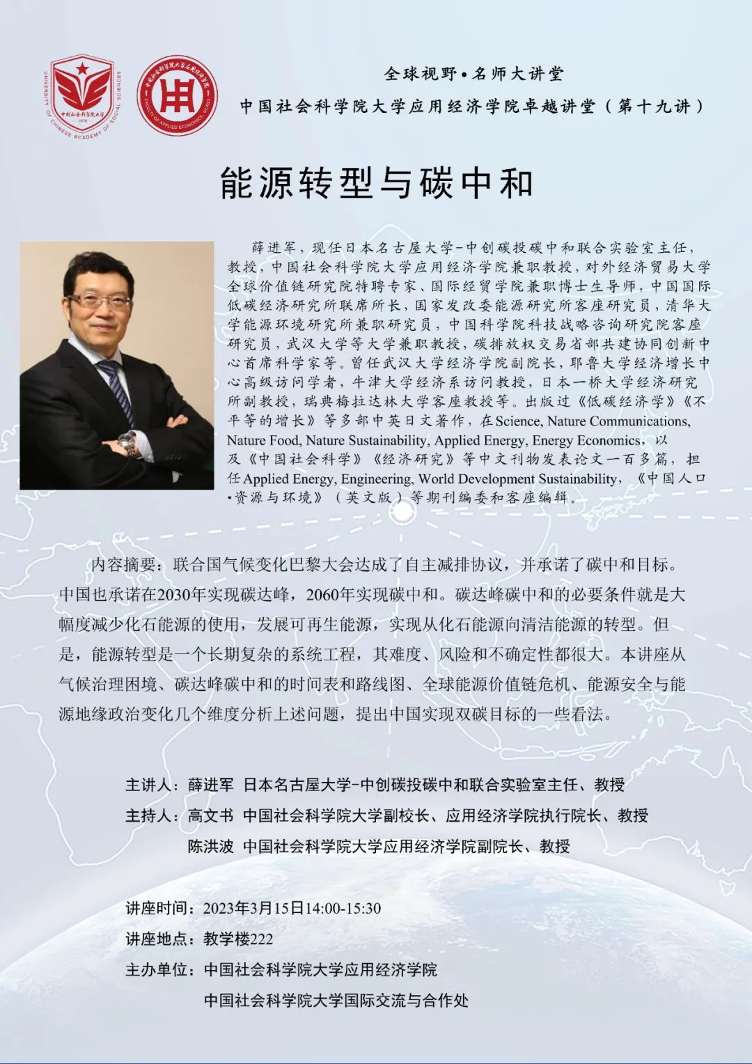 【讲座预告】卓越讲堂第19讲丨薛进军:能源转型与碳中和