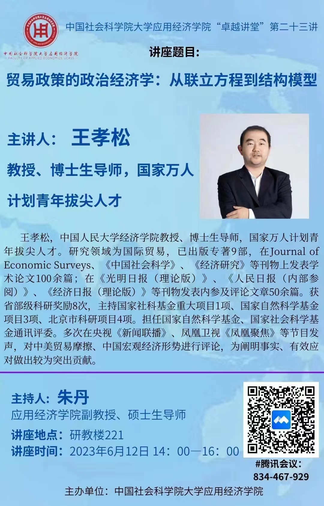 【讲座预告】卓越讲堂第23讲|王孝松:贸易政策的政治经济学:从联立方程到结构模型