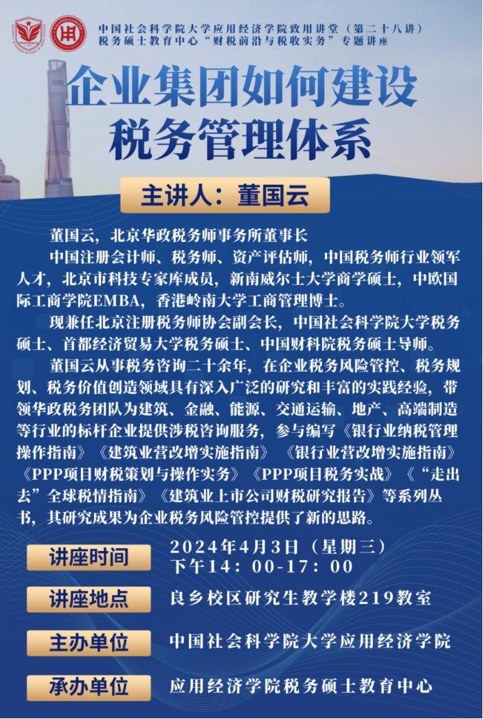 讲座预告|董国云:企业集团如何建设税务管理体系