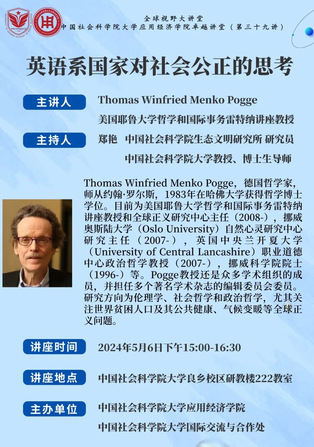 讲座预告|Thomas Pogge:英语系国家对社会公正的思考