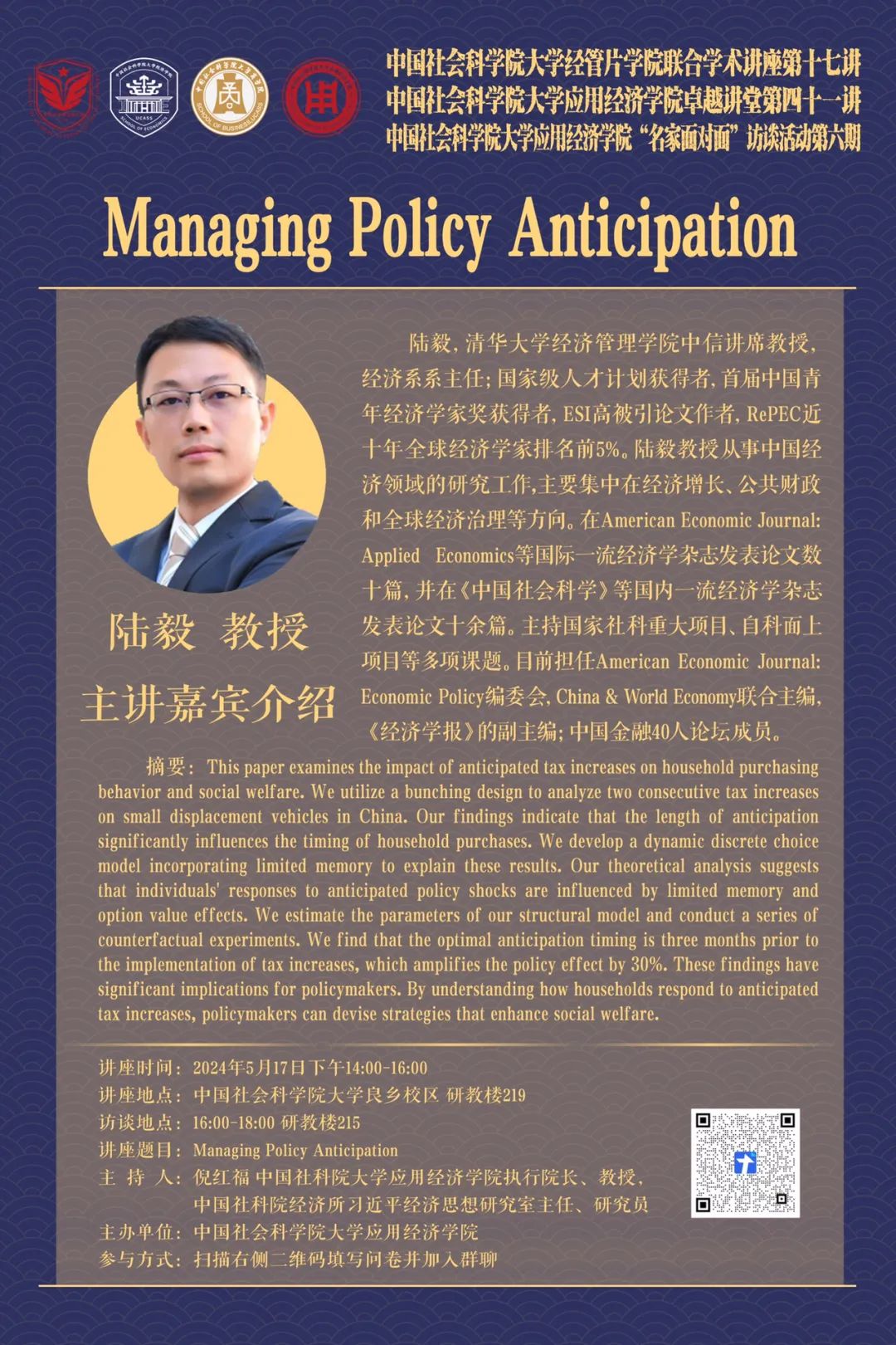 讲座预告|卓越讲堂第四十一讲 陆毅:Managing Policy Anticipation