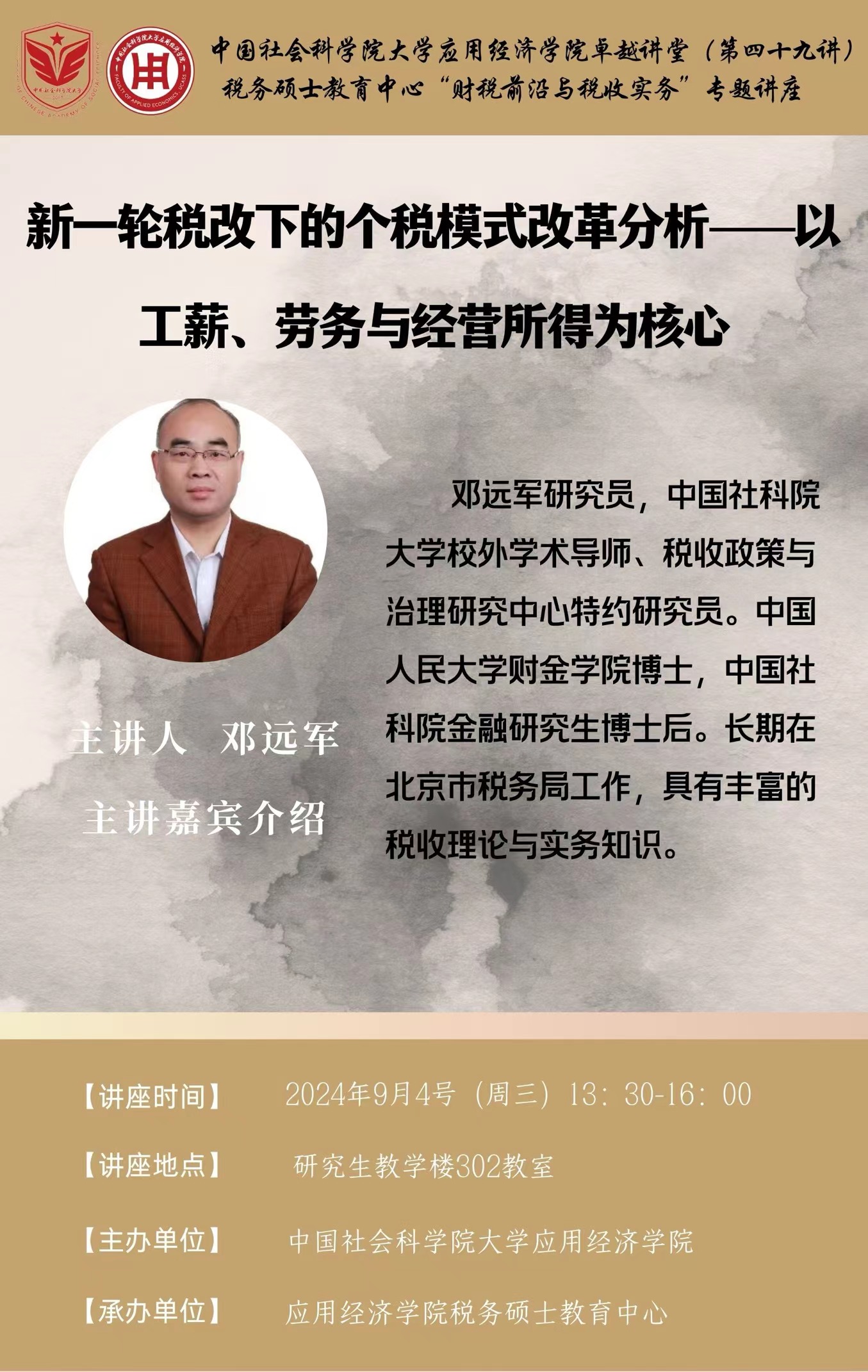 卓越讲堂第四十九讲|邓远军:新一轮税改下的个税模式改革分析—以工薪、劳务与经营所得为核心