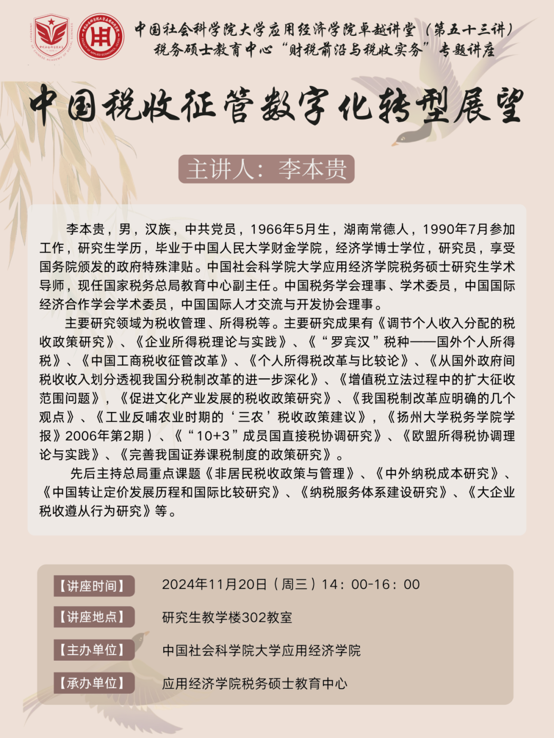 讲座预告|卓越讲堂第五十一讲 朱青:三中全会财税体制改革解读