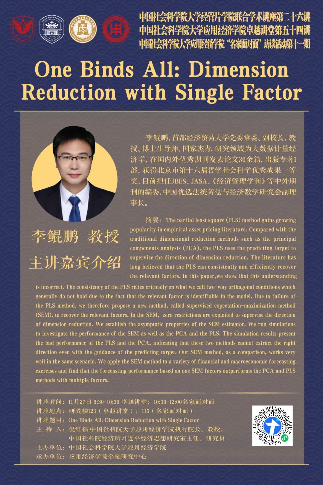 卓越讲堂预告 | One Binds All: Dimension Reduction with Single Factor