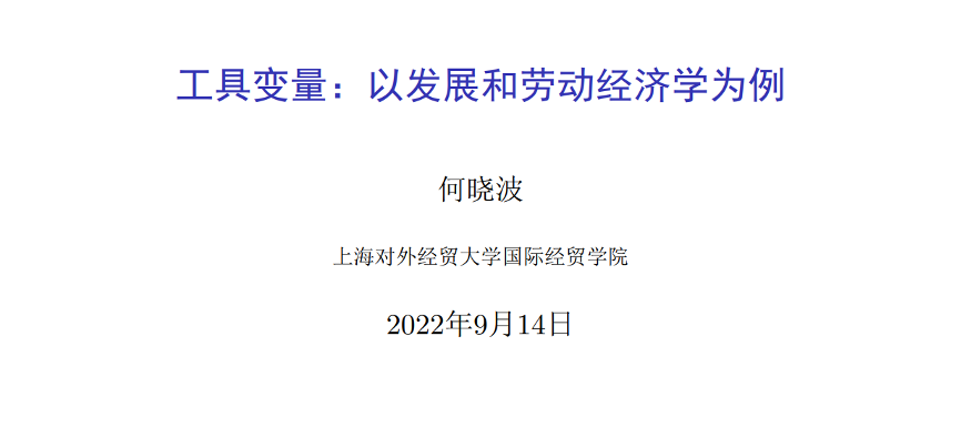 2022年9月14日,上海对外经贸大学副教授何晓波博士应邀作为主讲人,为逾200名在线参会者分享了主旨为“工具变量:以发展和劳动经济学为例”的学术讲座。本次讲座由胡惜玥主持并做总结发言。