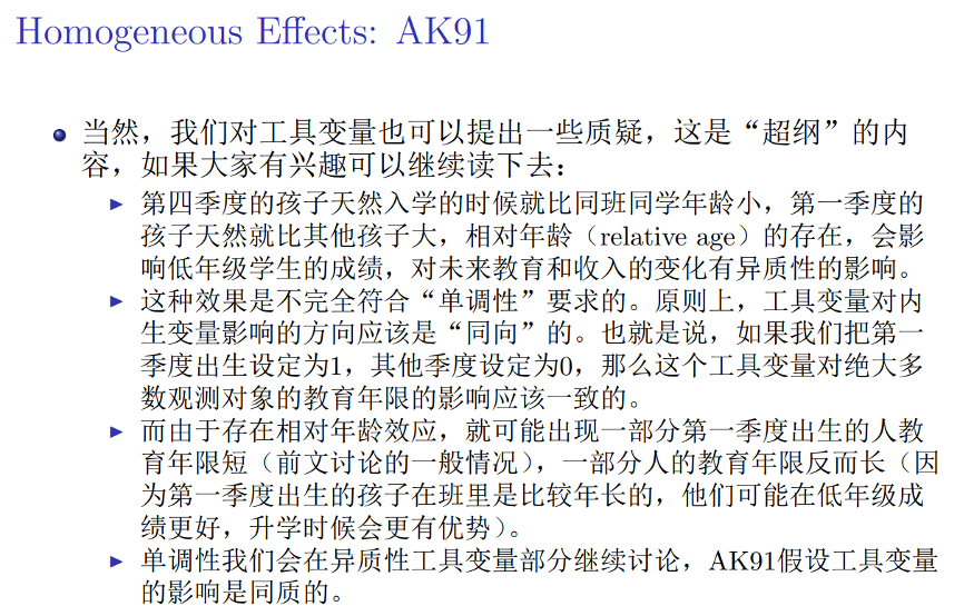 本次讲座从同质性效应、异质性效应、寻找工具变量三个方面展开。