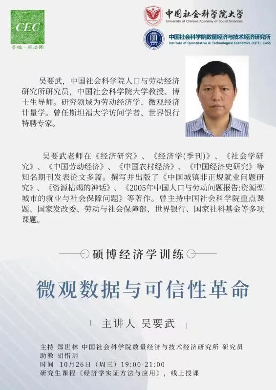 课程预告丨吴要武:微观数据与可信性革命