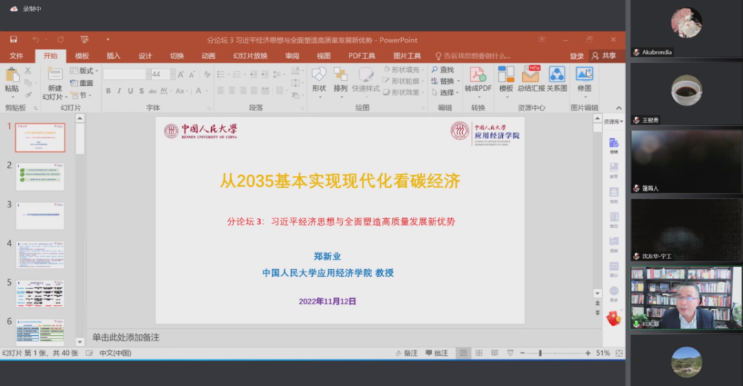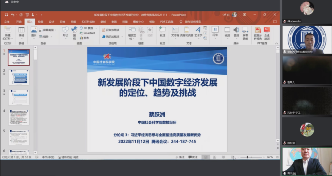 分论坛以腾讯会议的形式线上召开。其中,主题为“习近平经济思想与全面塑造高质量发展新优势”的分论坛由A漫