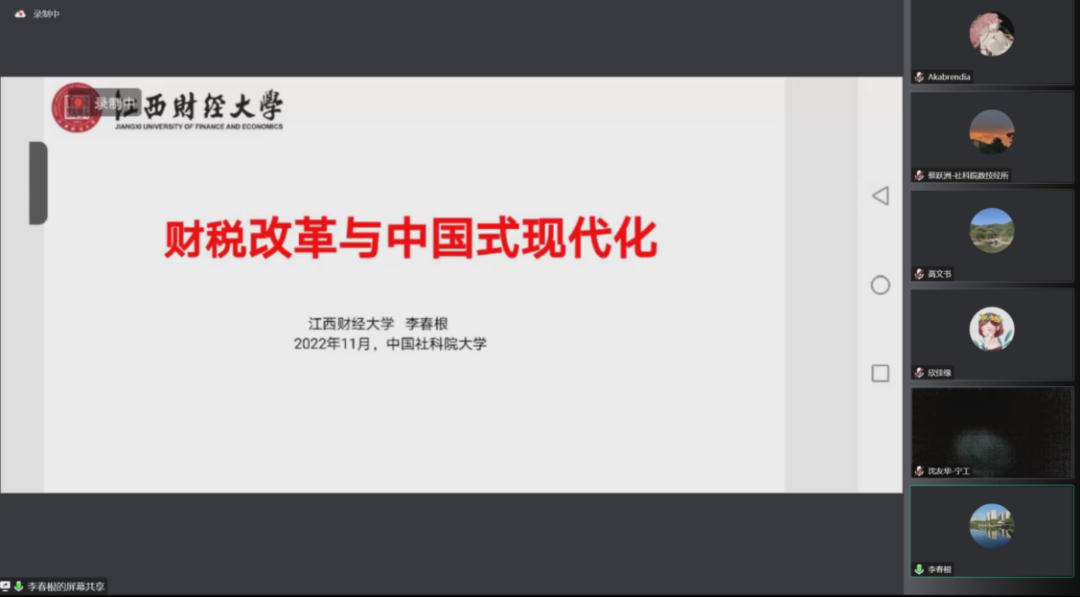 江西财经大学副校长李春根教授演讲的主题为《财税改革与中国式现代化》。他剖析了中国式现代化的深刻内涵、本质要求和重大原则,并提出了中国式现代化中财税改革的七大定位,即服务于两个大局、服务于五位一体总体布局、服务于创新驱动发展战略、服务于高质量发展和新发展格局、服务于保障和改善民生、服务于统筹发展和安全、服务于国家治理体系和治理能力现代化。李春根强调,财政是国家治理的基础和重要支柱,科学的财税体制是优化资源配置、维护市场统一、促进社会公平、实现国家长治久安的制度保障。在积极发挥财政职能作用、强化推进中国式现代化财力保障的同时,要充分认识财税体制改革的基础性、支撑性作用,着力构建与中国式现代化相适应的现代财税制度。