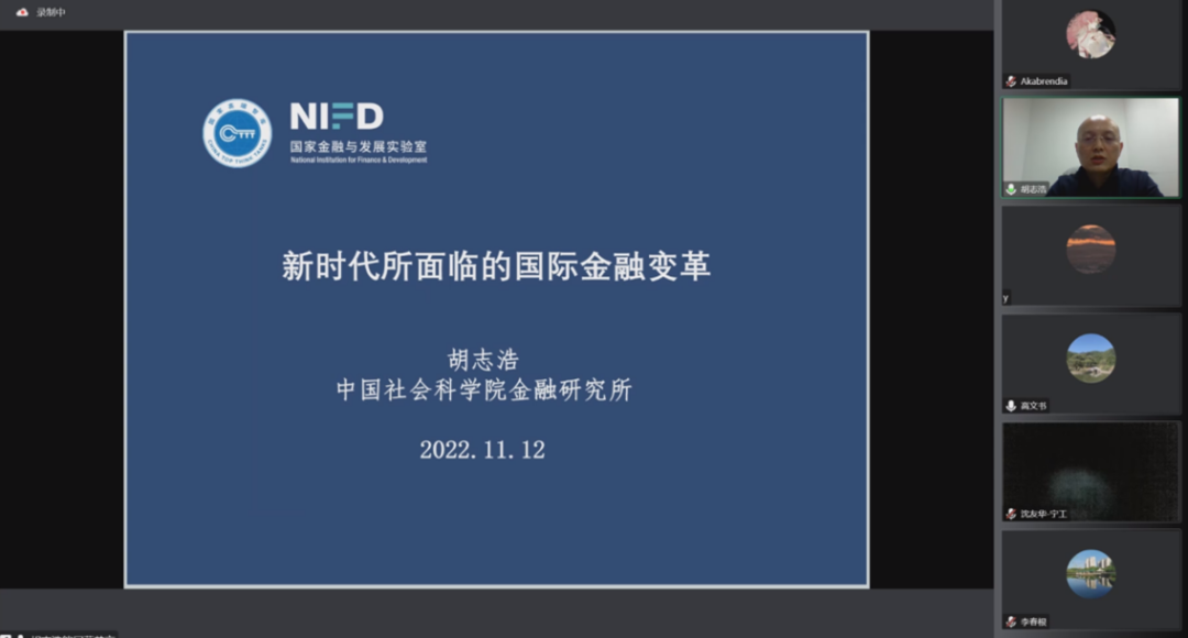 金融研究所国际金融与国际经济研究室主任、国家金融与发展实验室副主任胡志浩研究员以《新时代所面临的国际金融变革》为题发表演讲,给出了百年未有大变局之下的一个金融视角观察。他指出,次贷危机之后,全球美元金融结构发生了两点关键变化,即杠杆大幅增加和流动性泛滥,并进一步就债务总量是否存在上限这一问题展开讨论。胡志浩认为,债务总量是经济总量的伴生产物,而两者之间的比率受到经济体制、金融环境等因素的制约,因此债务的膨胀速度也一定程度上受制于经济增速。随后胡志浩阐释了美联储资产负债表的运作机制及流动性影响,并对金融变革带来的启示进行总结。他强调,次贷危机以来,政府信用的经济和金融含义上升到了一个更为重要的高度,人民币在新的国际金融格局下如何适应蜕变后的美元体系,值得进一步深入思考。