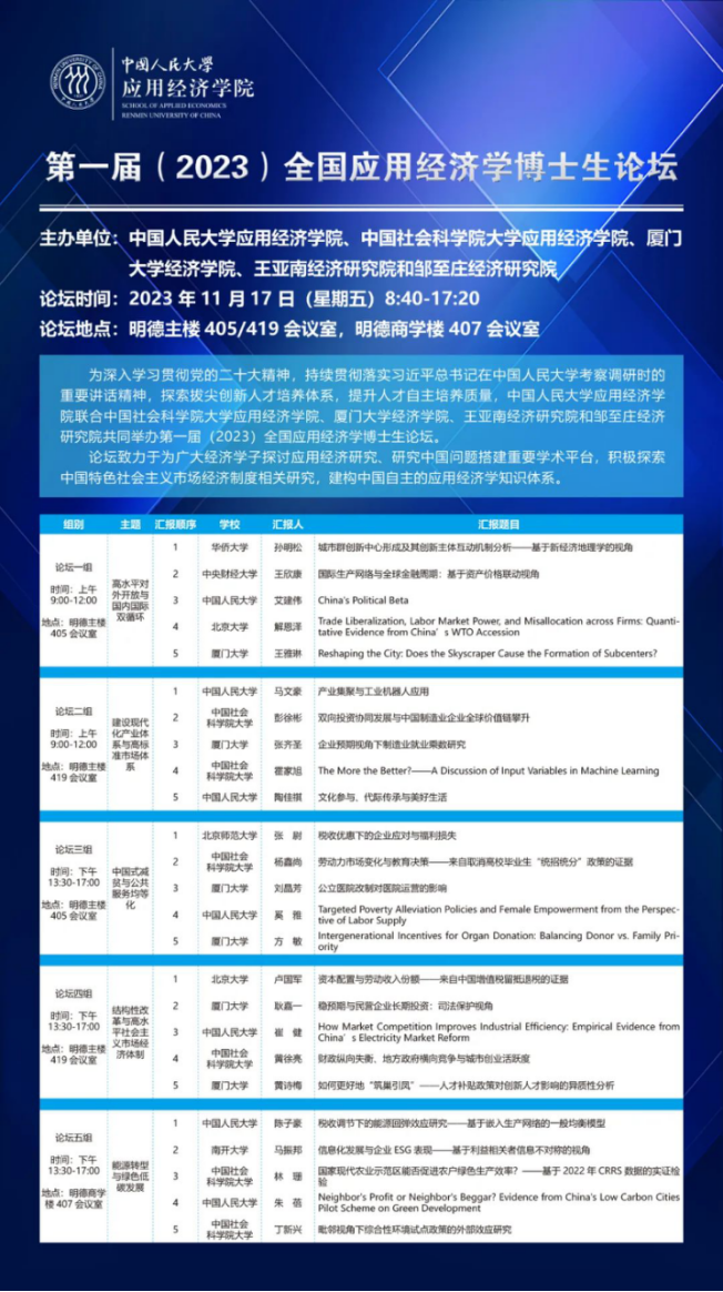 学术公告|第一届(2023)全国应用经济学博士生论坛