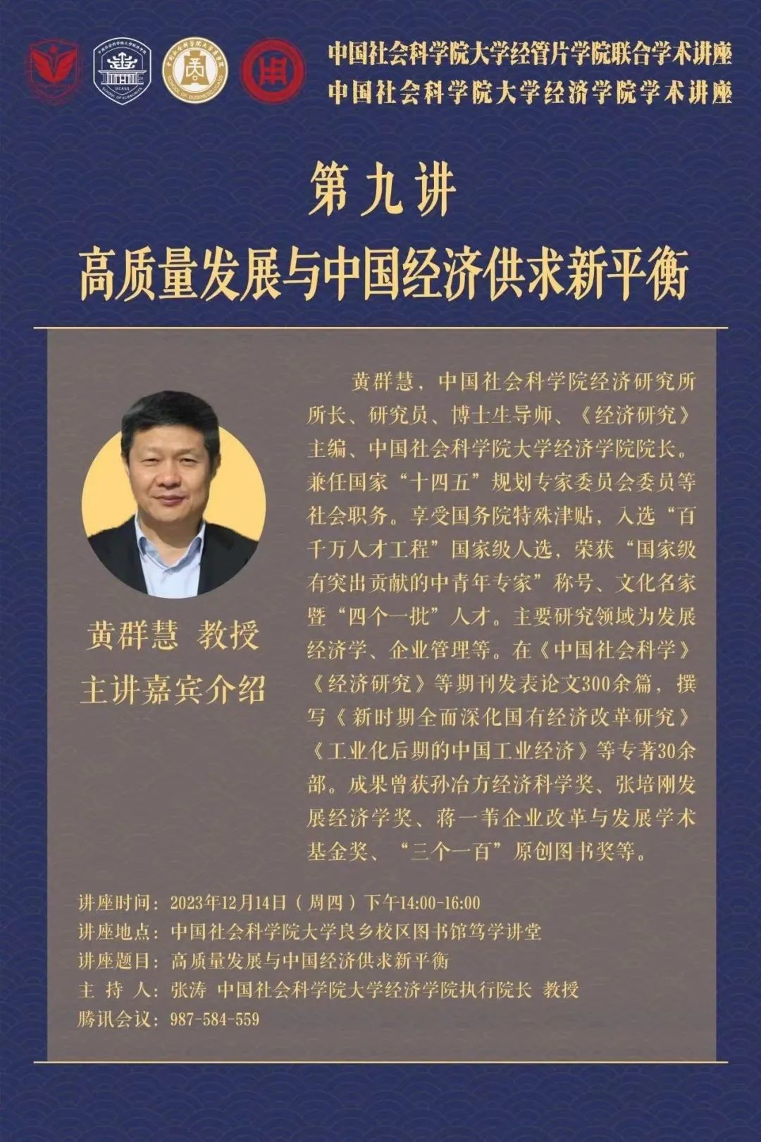 讲座预告|A漫 经管片A漫 联合学术讲座 黄群慧:高质量发展与中国经济供求新平衡