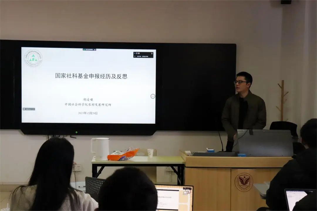 农村发展研究所助理研究员,分享主题为《国家社科基金青年项目申请经验》。在汇报中,他结合自己项目申请经历、相关经验教训以及项目申请书撰写要点等进行了分享。