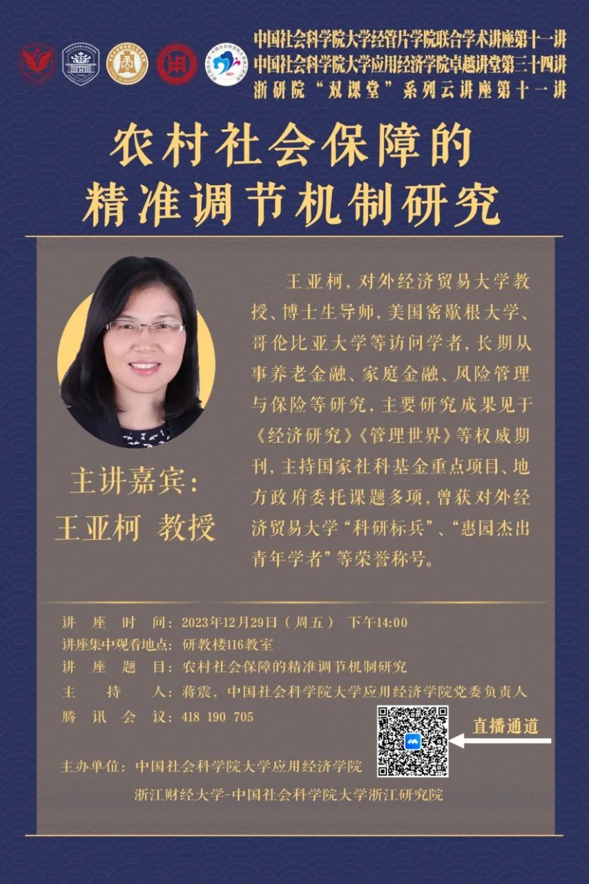 讲座预告|经管片A漫 联合学术讲座 第十一讲:王亚柯:农村社会保障的精准调节机制研究