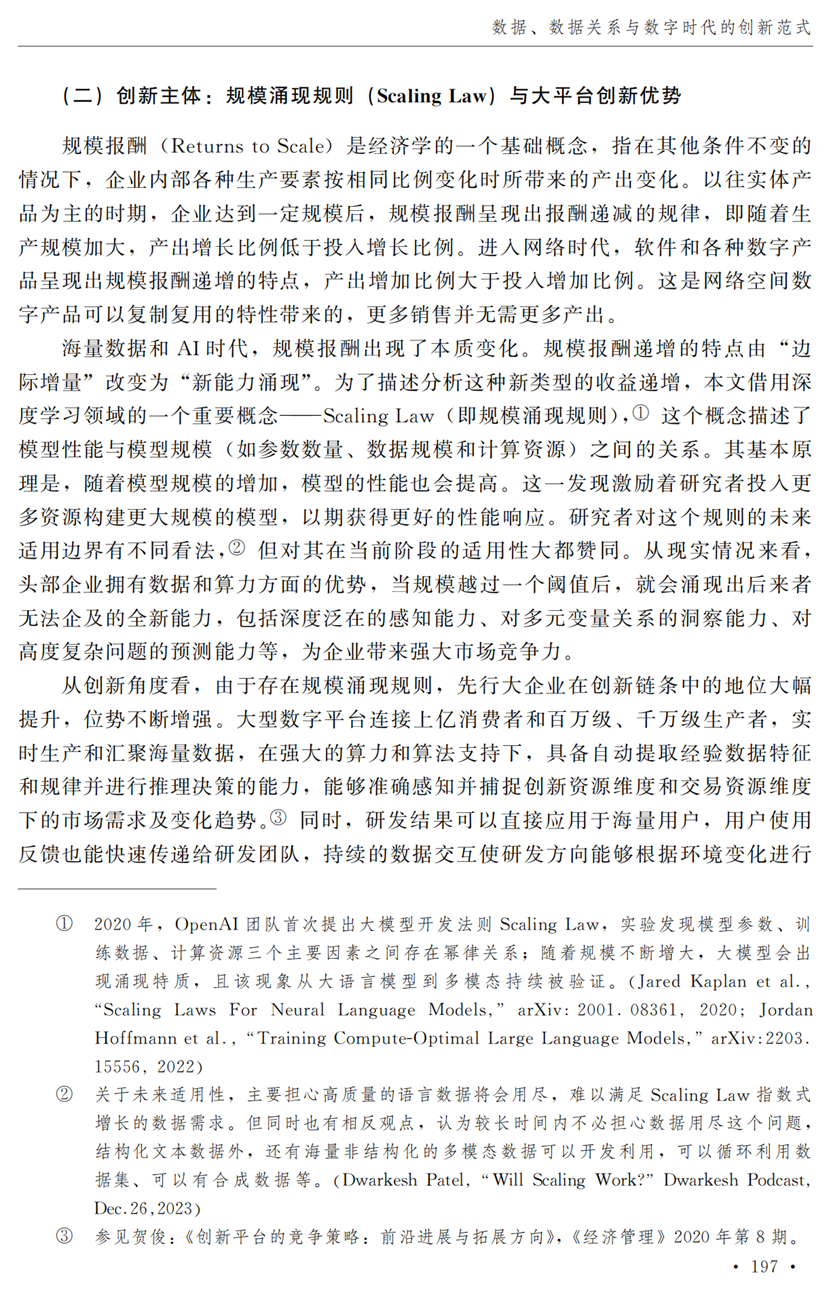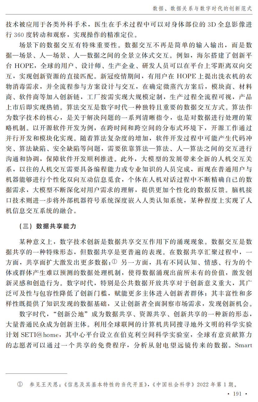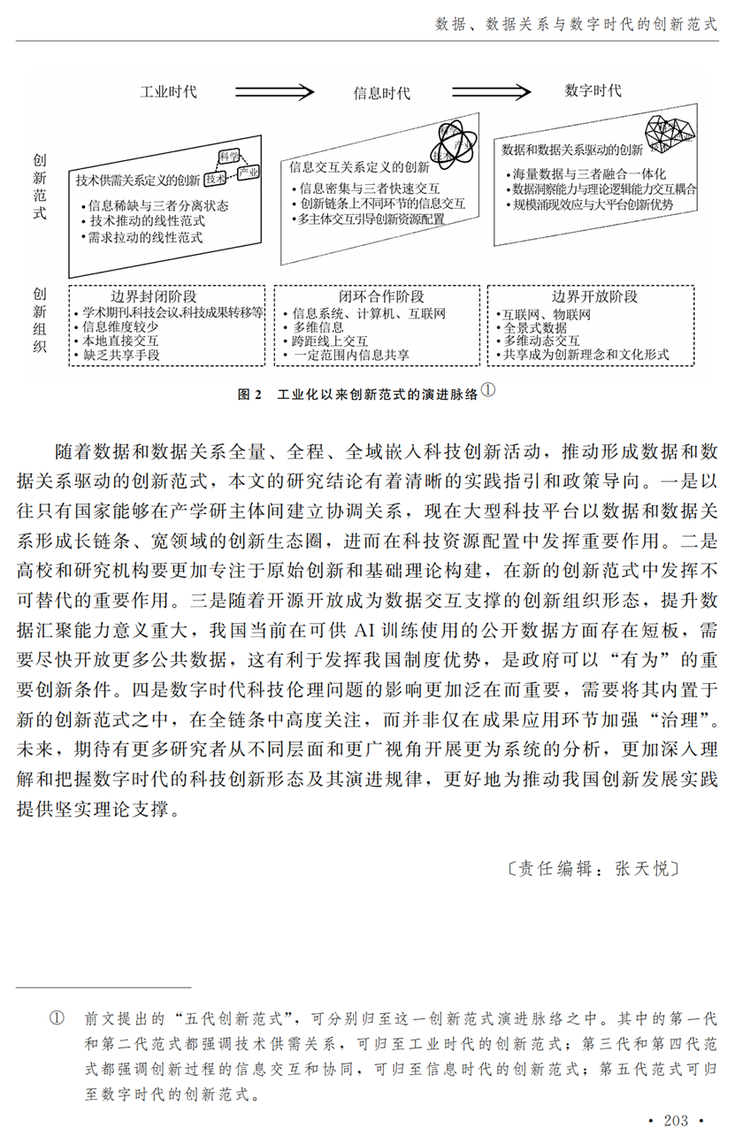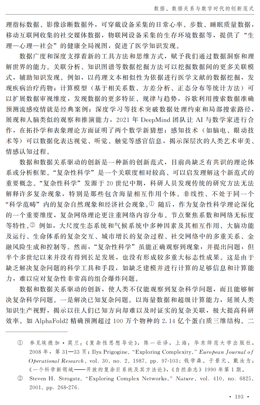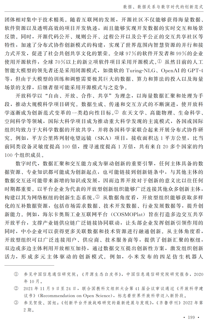 助理研究员李秋甫,合作于《中国社会科学》2024年第9期发表论文《数据、数据关系与数字时代的创新范式》。文章指出,在数据和数据关系驱动的创新范式中,数据洞察能力和理论逻辑能力交互耦合成为创新的关键源泉,规模涌现效应使得大型平台在创新链条中的地位显著前移并全面提升,开源开放式创新则是提升数据汇聚交互能力和优化创新资源配置的重要组织形态。数据和数据关系的重要性生发出新的科技伦理问题,进而对人类社会的传统秩序带来挑战。深刻理解和把握新的创新范式,对于深化创新理论研究、构建国家创新体系以及强化创新政策导向等意义重大。