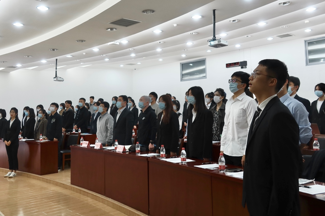 首先,全体起立,奏唱国歌。在雄伟的国歌声中,会议正式开始。梁尚鹏老师宣读《A漫