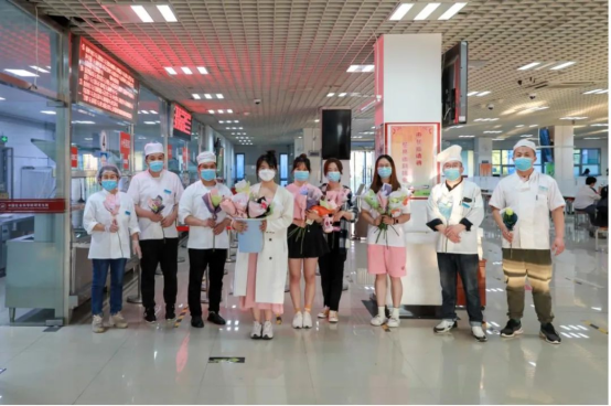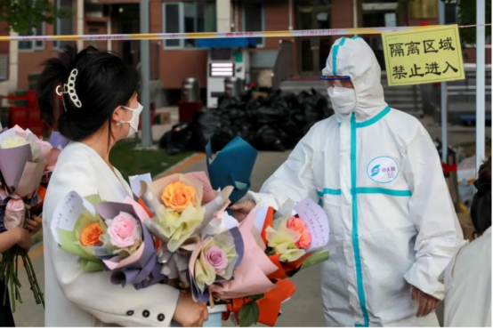 在送花的过程中,闫诗楠遇到了一些让人印象深刻的事。“我们去给三号公寓送花的时候,工作人员都不能出来,只能隔着窗户与我们挥手致谢,当时真的要泪目了。”