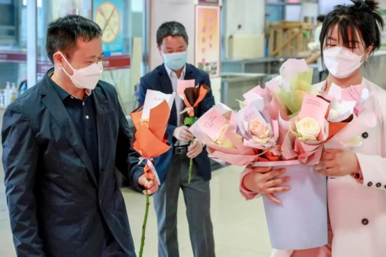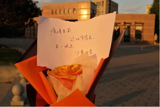 辅导员;从近在身边的宿管、大白,到远在南门的快递小哥和保安,都收到了属于自己的花束。