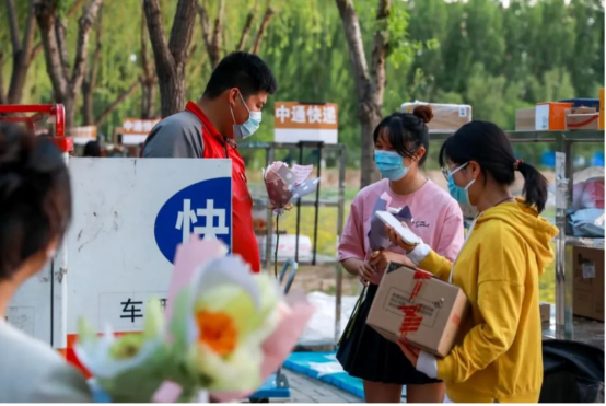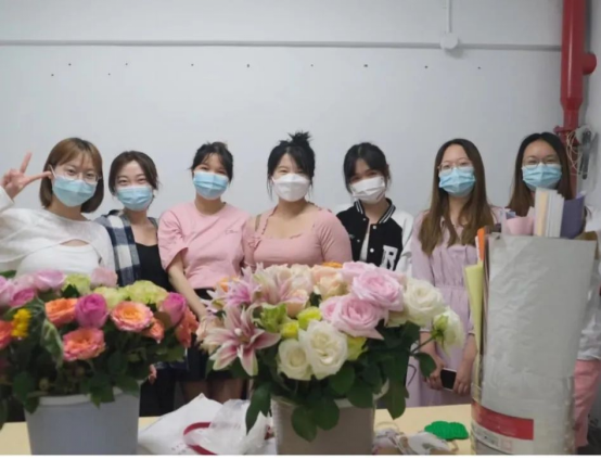 5月1日早上,空运而来的花束到了社科大。