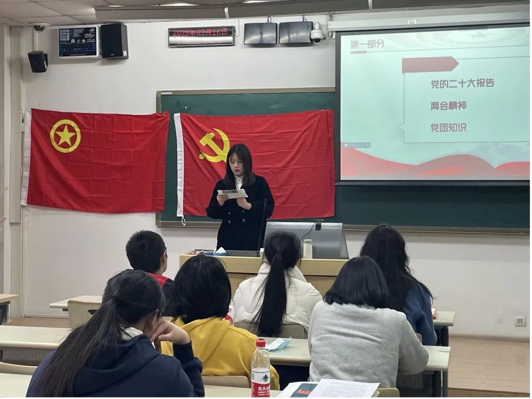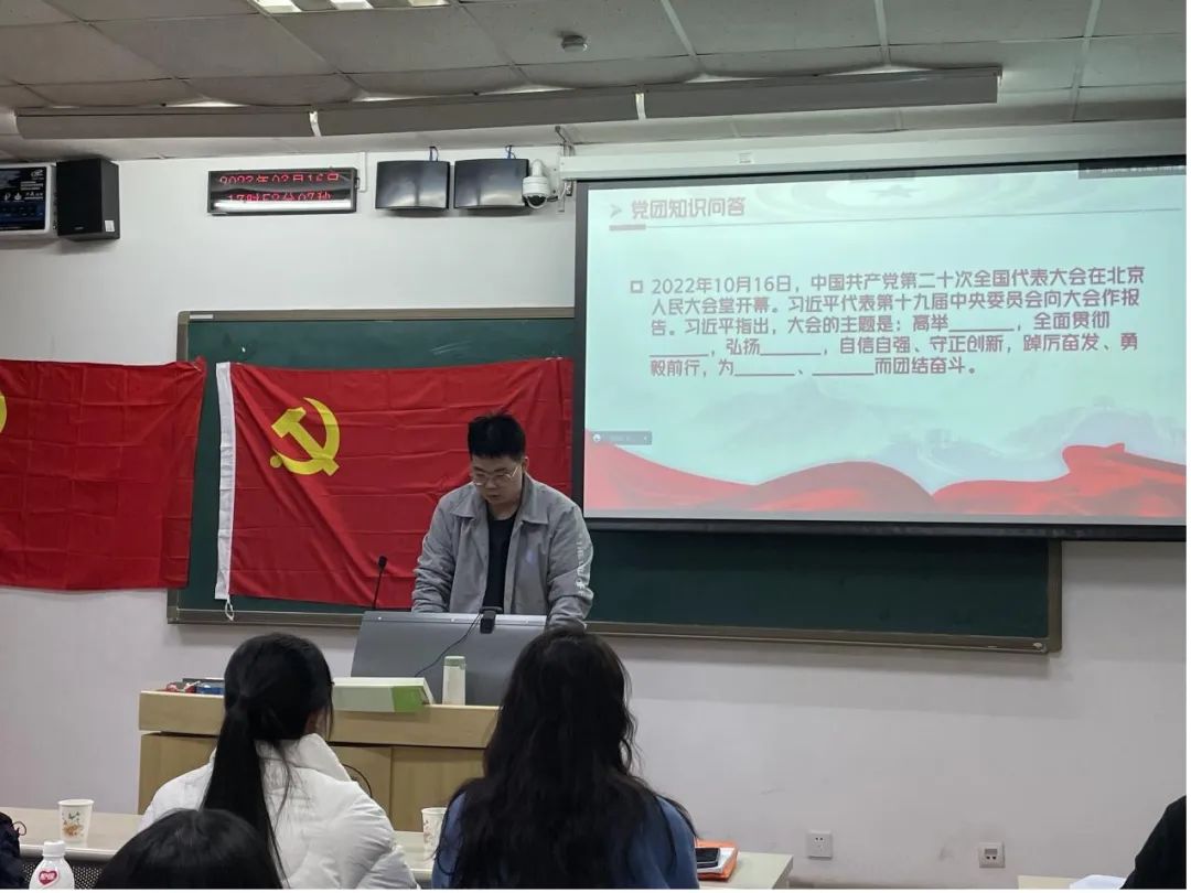 为了进一步深入学习贯彻党的二十大精神,引领广大青年学生坚定理想信念,通过组织班级集体学习,能够切实把思想和行动统一到党的二十大精神。3月16日下午,2022级博士2班于良乡校区106教室召开了2023年春季学期“青春奋进二十大”主题班会及党日团日活动。会议内容包括:二十大报告和两会精神学习感悟分享、“学雷锋”思想讨论、党团知识问答竞赛、新学期思想交流、以及党组织生活会等环节。