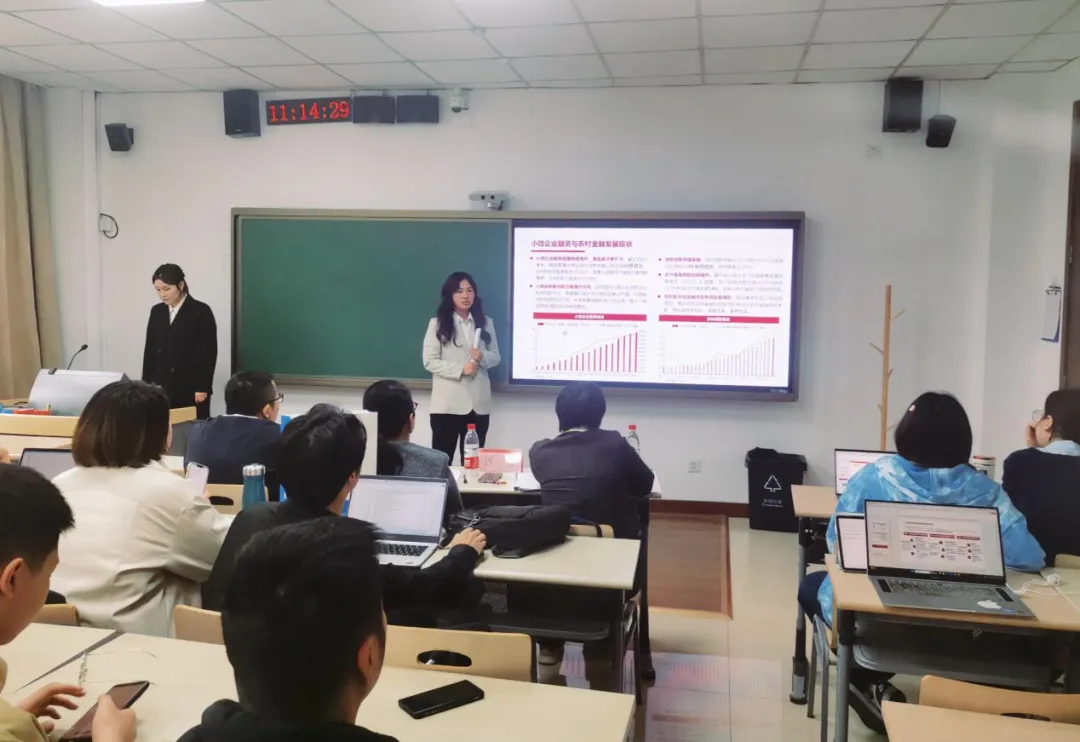 二等奖有两支队伍,分别是由王忠旺、姜雨奇、李金朋和宋艳霞汇报的“网商银行:乘金融科技之翼,拓普惠金融之宇”和由王美懿、徐子惠和王思微同学汇报的“挽涸辙之鲋于将枯兮,擎方圆以治序--透视河南村镇银行风险敞口”。