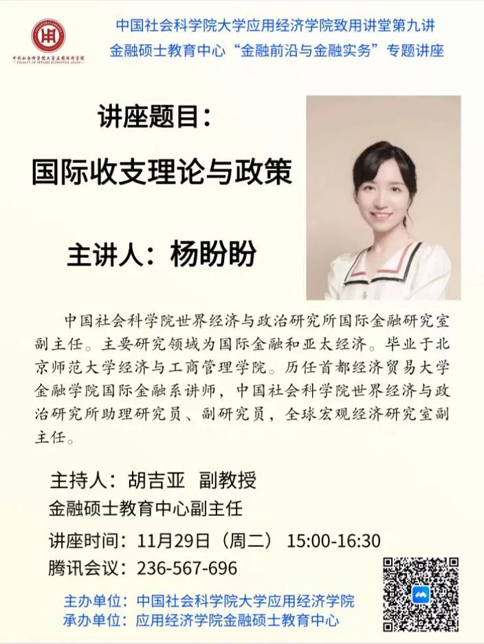 【讲座预告】致用讲堂 第9讲丨杨盼盼:国际收支理论与政策