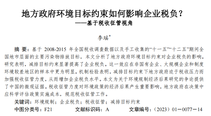 ,博士研究生,研究方向为环境规制与企业税负。