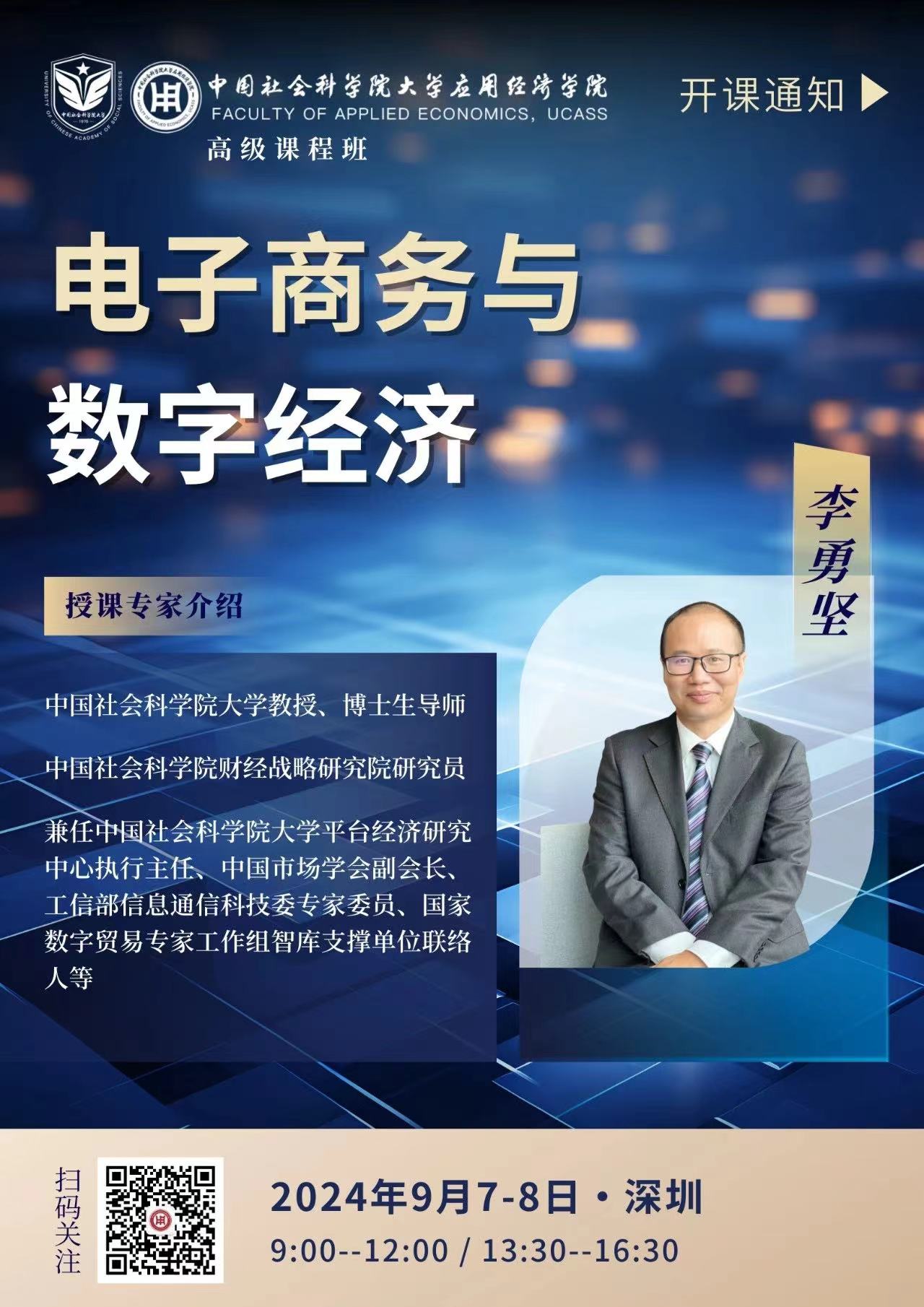 课程预告 |2024级产业经济与管理高级课程班9月课程《电子商务与数字经济》