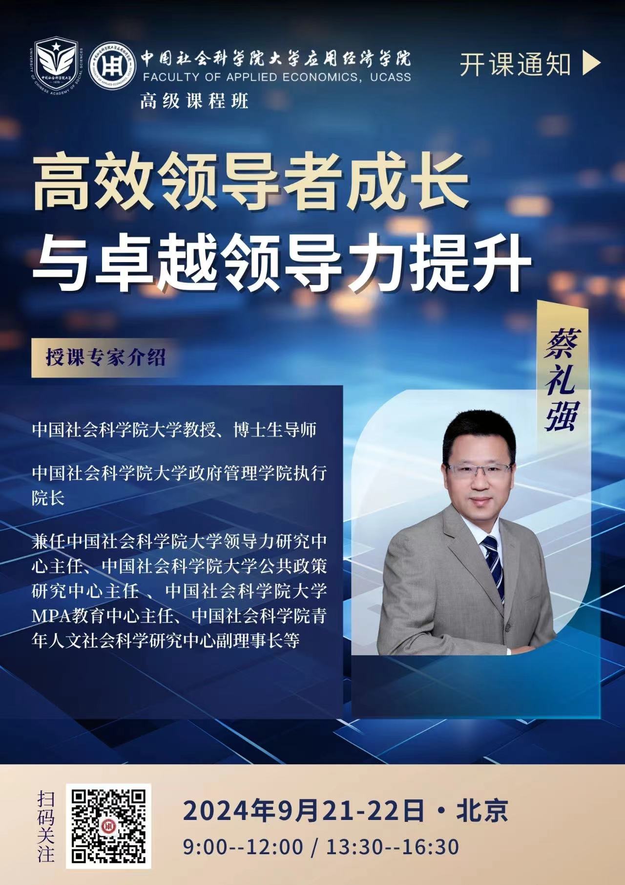 课程预告 |2024级产业经济与管理&领导力与管理创新高级课程班9月课程《高效领导者成长与卓越领导力提升》