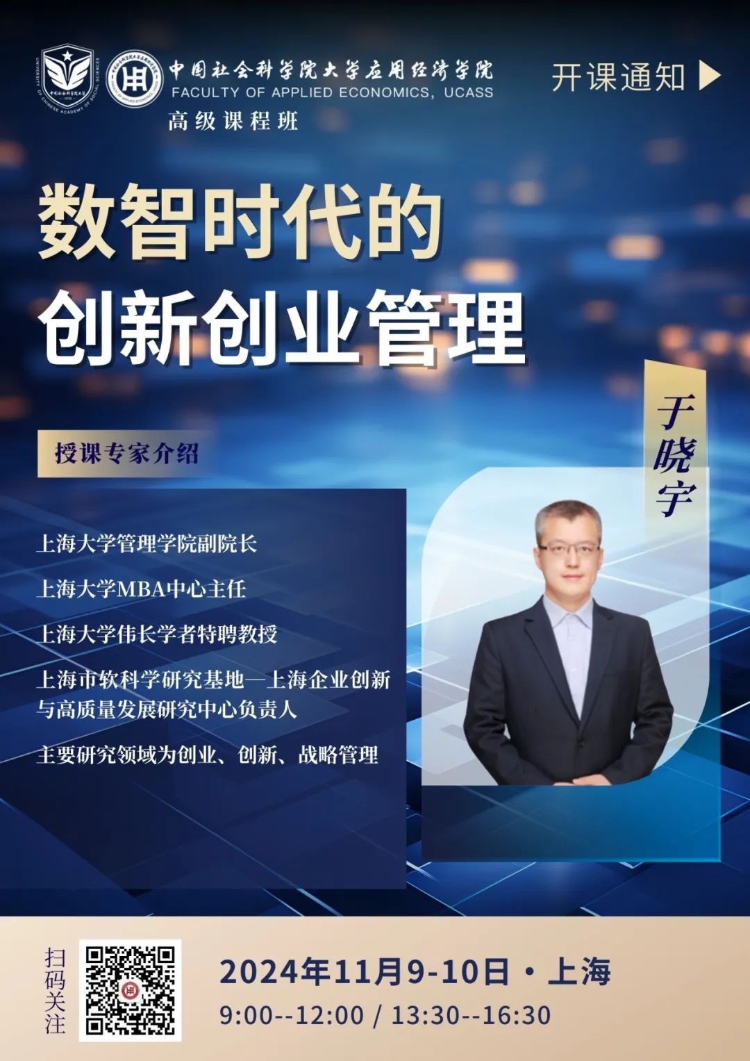 课程预告 24级产业经济与管理方向(京沪)高级课程班11月课程《数智时代的创新创业管理》