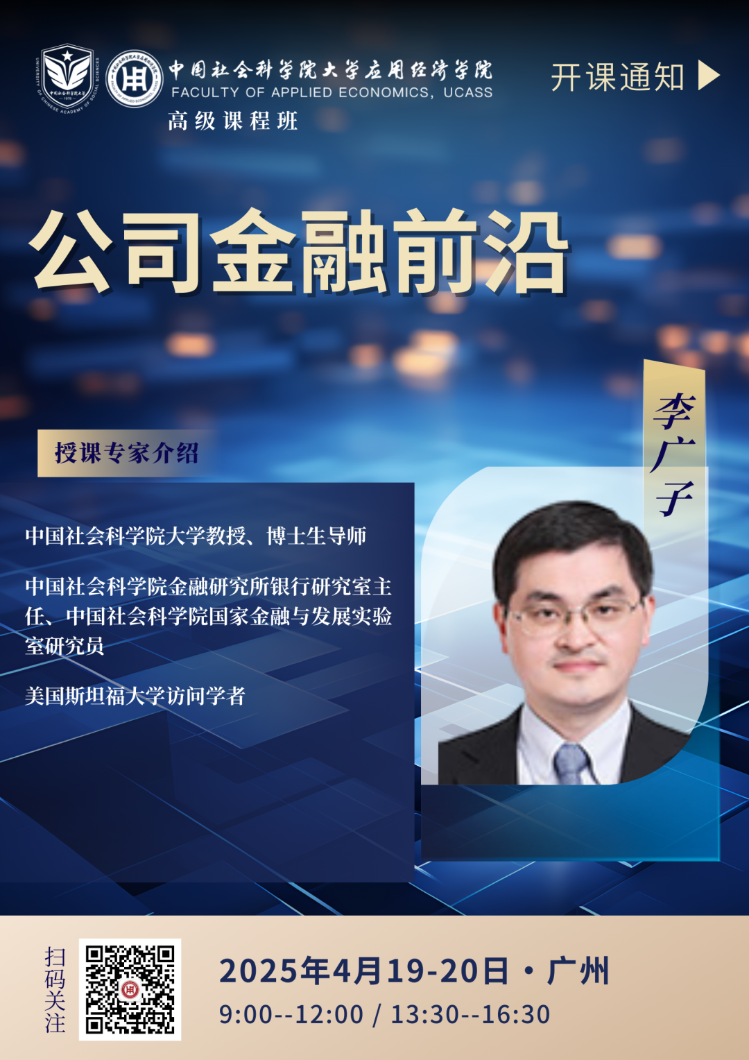 课程预告 |23、24级金融学专业高级课程班4月课程《公司金融前沿》